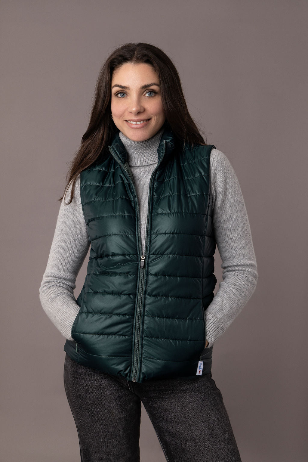Notre doudoune sans manches vert forêt totalement made in Rhône-Alpes et labellisée Origine France Garantie est conçue pour vous accompagner en toutes saisons. Cet intemporel est devenu un vêtement incontournable aussi bien d'intérieur que d'extérieur qui vous tiendra au chaud tout en gardant une grande mobilité avec les bras libres de leur mouvement. Grâce à sa doublure chaude et respirante et ses finitions de qualité, elle est très confortable et comme elle est compacte et légère, elle vous suivra partout! La tempérée sera votre atout pour la transition entre les saisons, elle se glissera aussi très bien sous un manteau ou une parka pour un confort et une chaleur absolue, bref, vous ne pourrez plus vous en passer...