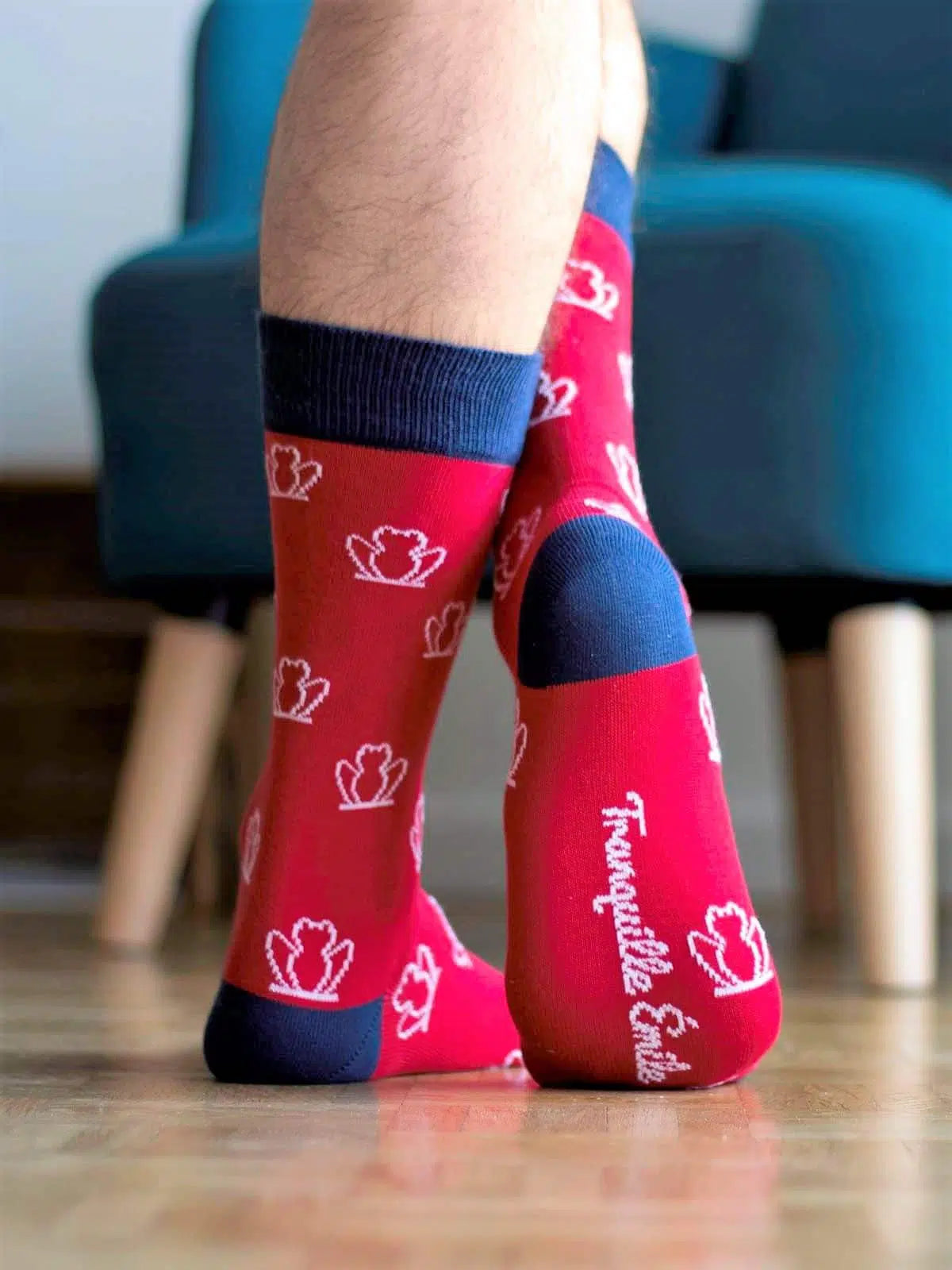 Une nouvelle version de notre paire de chaussettes made in France Les Grenouilles avec un coloris rouge et des motifs blancs. Les chaussettes sont un accessoire de mode incontournable et sont devenues des classiques à assortir avec toutes vos tenues. Optez pour un look tendance et mettez en valeur vos chevilles. Nos chaussettes Les Grenouilles – Rouge ont une hauteur mi-mollets et sont disponibles pour Homme et Femme du 36 au 45.