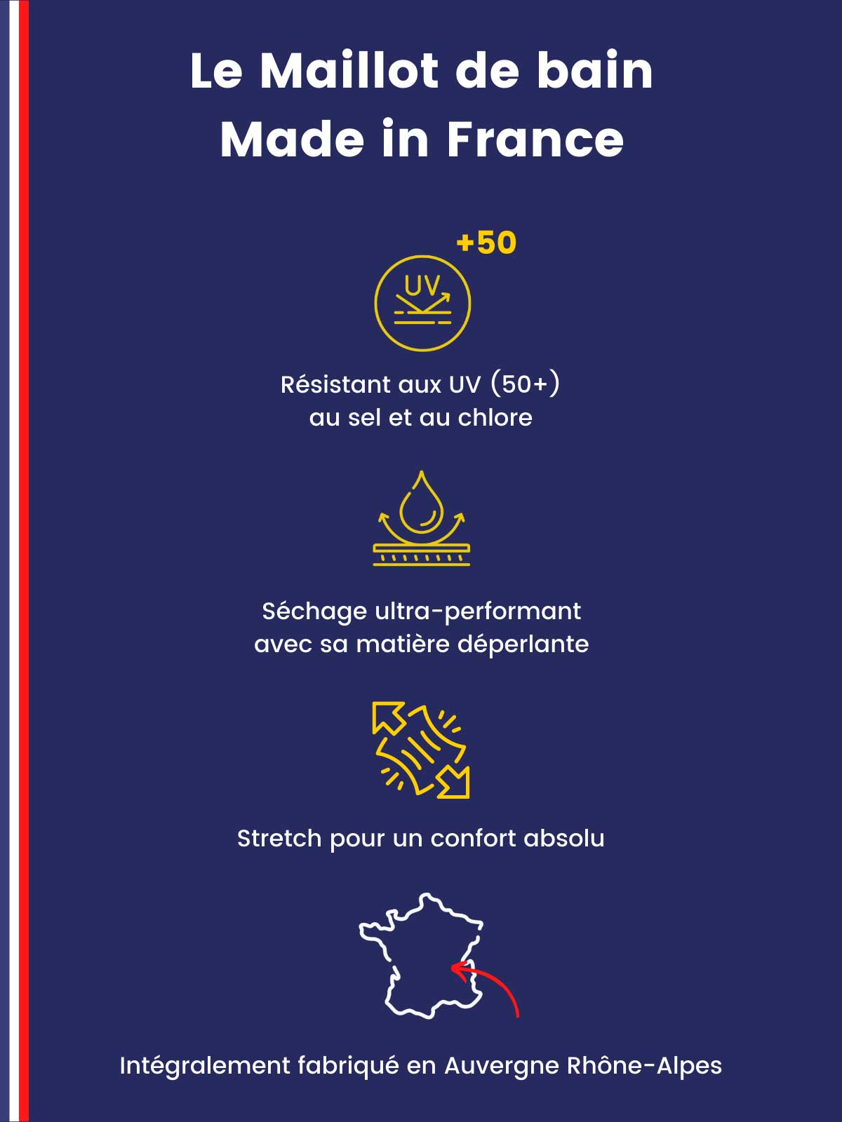 Notre maillot de bain est fabriqué dans notre atelier de Brignais pour une empreinte carbone la plus réduite possible. : du 100% Made in France!