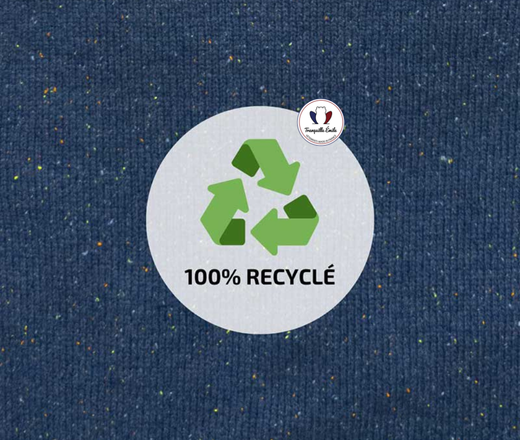 - 100% recyclé: 66% acrylique - 11% Laine – 12% Polyamide – 6% Soie – 5% Autres fibres