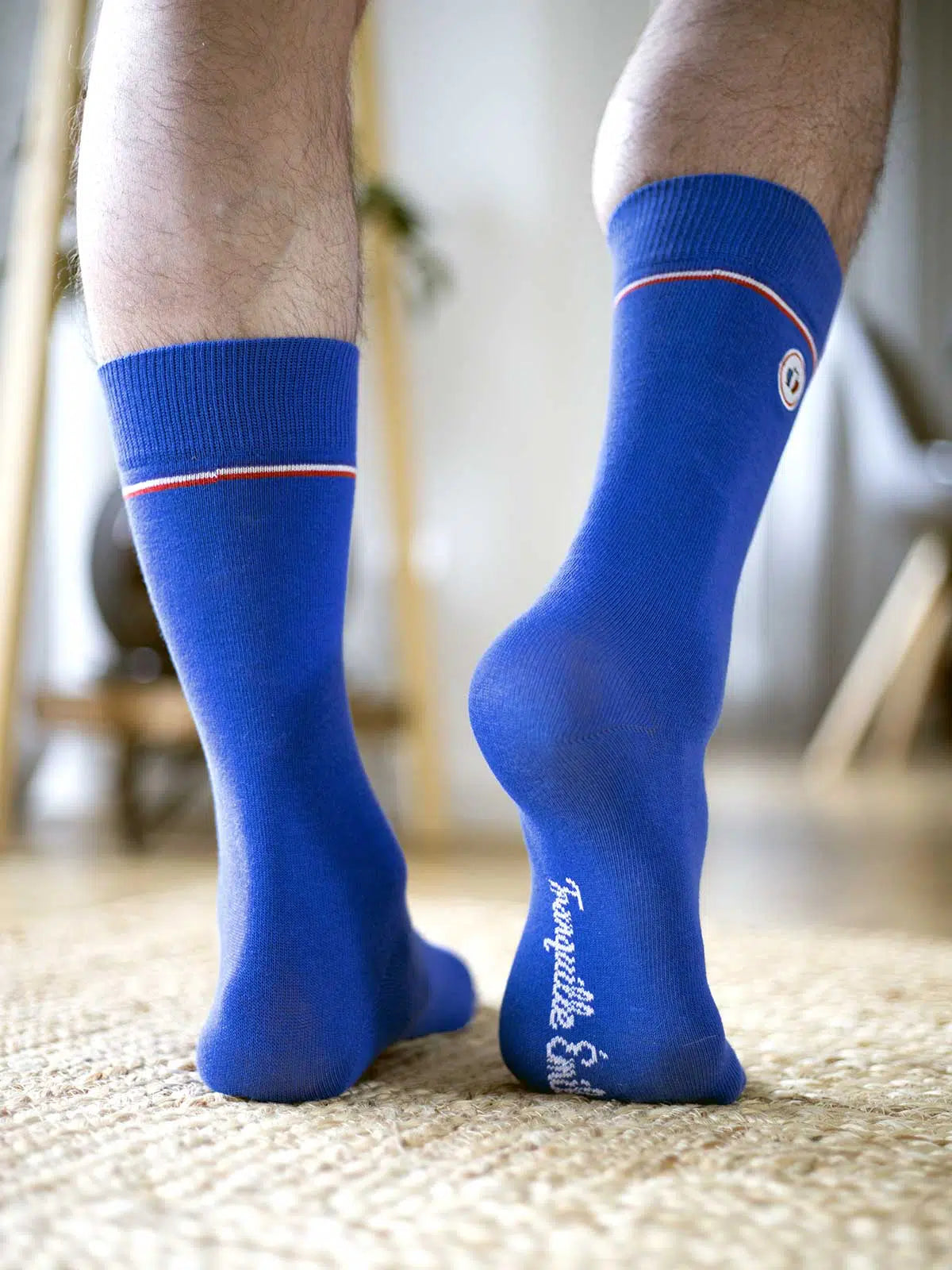 Les Unies sont les chaussettes les plus sobres de Tranquille Emile. Sobre mais tendance avec leur liséré tricolore à la cheville et le logo Tranquille Emile finement brodé sur la chaussette. Les chaussettes sont un accessoire de mode incontournable et sont devenues des classiques à assortir avec toutes vos tenues. Optez pour un look tendance et mettez en valeur vos chevilles. Nos chaussettes Les Unies – Bleu électrique e ont une hauteur mi-mollets et sont disponibles pour Homme et Femme du 36 au 45.