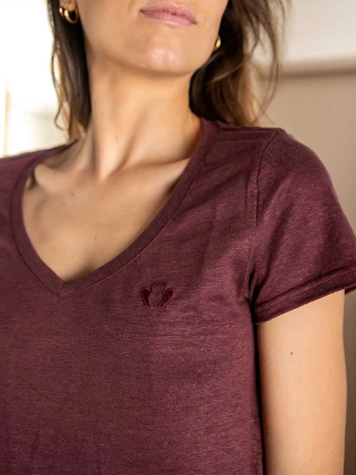 T-shirt femme lin bordeaux