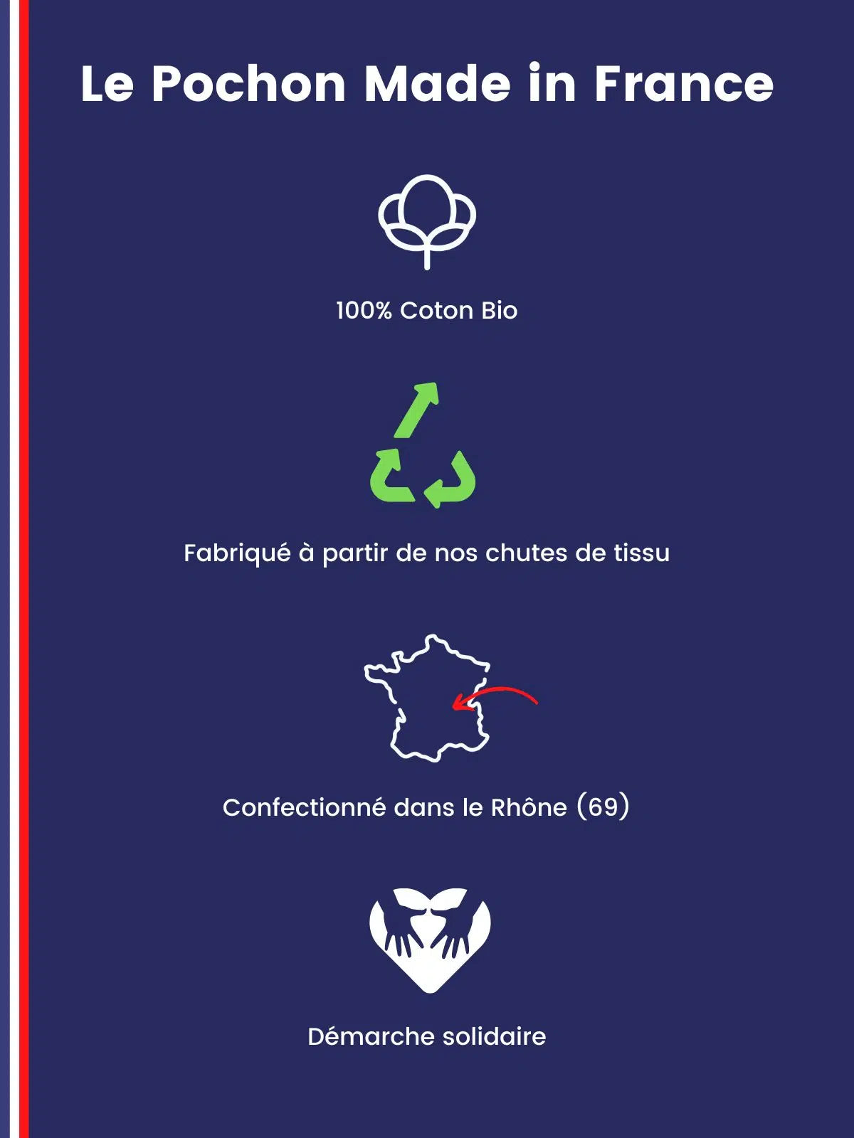 Offrez votre cadeau made in France dans un pochon 100% fabriqué à partir de nos chutes de tissus.